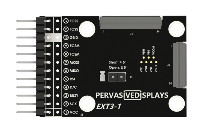 The Touch Expansion Board for EXT3 (EXT3-Touch) opens a new dimension for EPDs. Instead of being passive, they can now act as input devices for any interactive interface, like Human Machine Interface (HMI) and thermostat. This is also a perfect configuration for ultra-low power IoT remote controls.